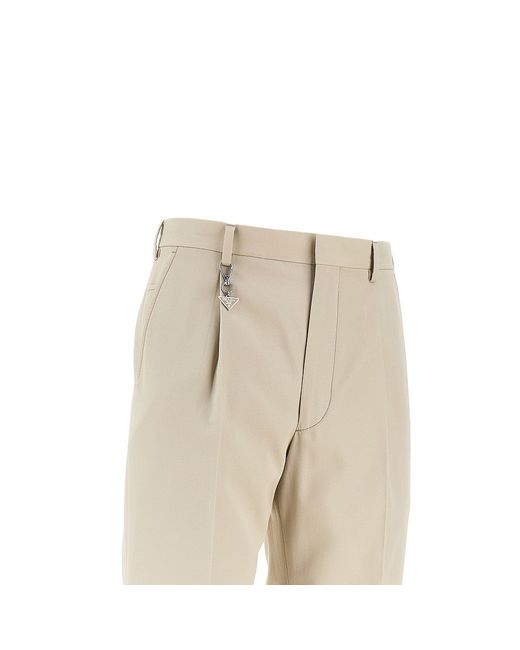 Pants made from soft and lightweight cotton twill, enriched with removable silver-finished metal charm with snap-hook and enameled triangle logo. Belt loops, zip fly and concealed hook and button closure. Side slanted pockets and rear welt ones with button. Slim fit with front dart.