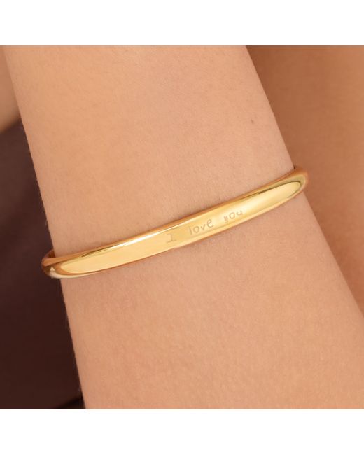 Sleek and effortlessly elegant, our Domed Bangle is a modern must-have. With a curved silhouette and luxurious 18k gold plating, make it yours (or theirs) with a handwritten outer and inner engraving. Stack with your favourite Abbott Lyon bracelets or style solo for a refined, less-is-more look. To add a handwritten engraving, simply write your message on a white background and take a clear photo. When personalising your product, you'll be prompted to upload this image to our website. You'll then be able to adjust and position your handwriting to ensure it sits perfectly on the piece. NEED TO KNOW 18k gold-finish stainless steel Five-year quality guarantee Available in sizes S/M (45mm x 55mm) & M/L (50mm x 60mm)