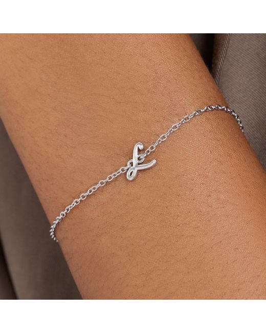One of our daintiest personalised designs yet. A timeless way to carry a loved one's initial or your own, this understated yet elegant script letter bracelet adds a touch of meaningful sophistication to any look. Finished in premium silver plating, every detail is crafted with lasting luxury. Want to add more charms? Choose our Made Mine Charm Bracelet and customise with birthstones and symbols that tell your story. NEED TO KNOW Silver-plated stainless steel Five-year quality guarantee Comes in luxury packaging Slider mechanism - adjustable sizing 6-7.5 in