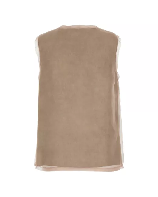 pink silk scoop neck sleeveless straight hem sheer trim details