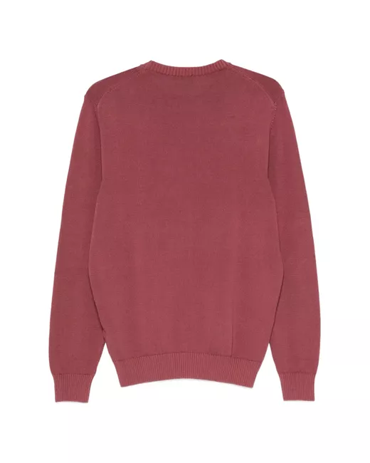 red cotton knitted construction crew neck long sleeves ribbed cuffs ribbed hem