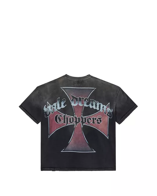 black cotton distressed effect graphic print to the front and rear crew neck short sleeves straight hem