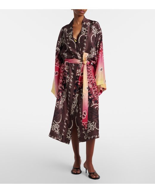 Material: 100% silk. Care instructions: dry clean. Made in Italy. Designer color name: Multicolor V1. Silk. Pockets: slit pocket. Detachable belt.