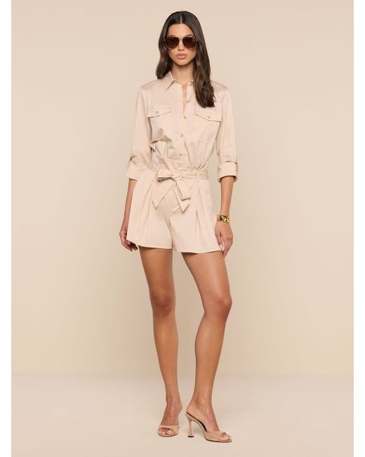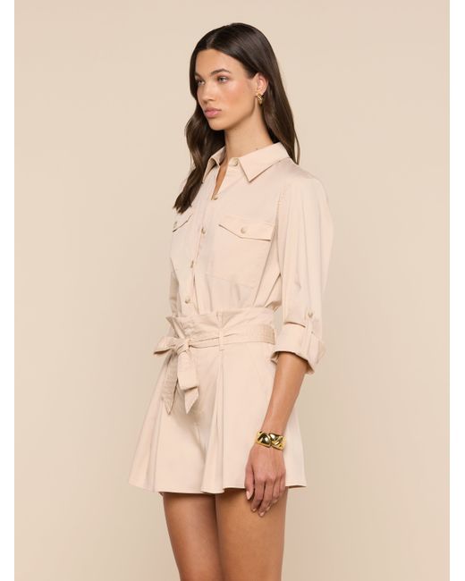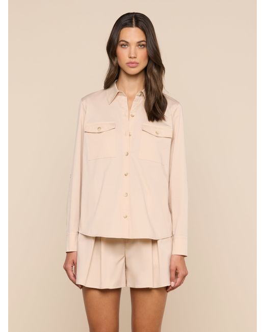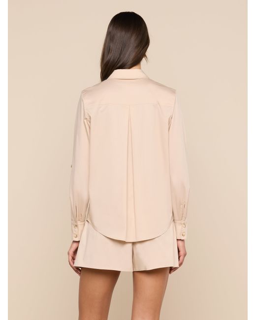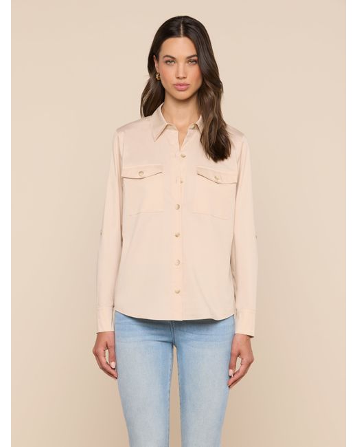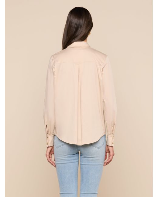 Office or off-duty, the Pearson button-down offers smart sophistication with sharp utility-inspired elements. Crafted from crisp poplin with a subtle stretch, it adds instant polish to any look. This wardrobe essential is back in a neutral. • Cotton blend poplin• Roll tab sleeves• Flap pockets• Button closure L'AGENCE Pearson Poplin Blouse Top In Biscuit
