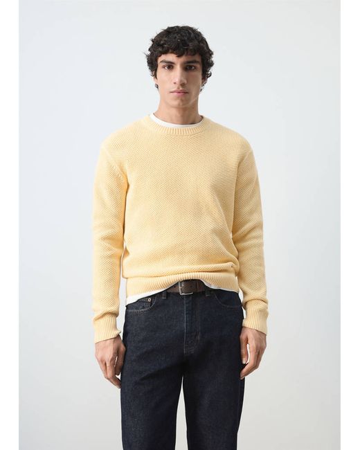 Mid-weight knitted fabric with microstructure, Cotton blend fabric, Straight design, Round neck, Untrimmed hem