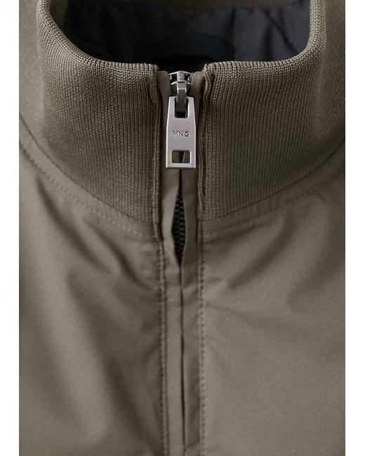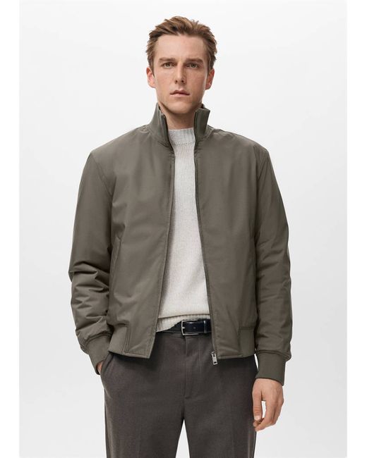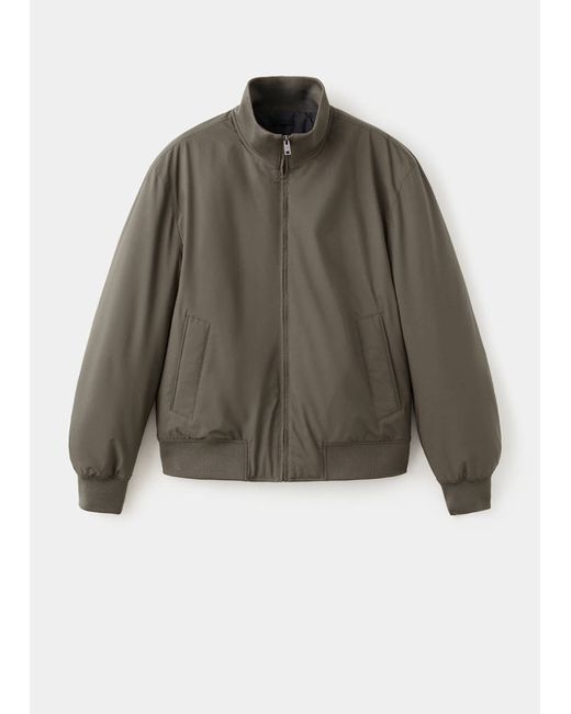 Water Repellent: Technical water-repellent fabric, Bomber design, Funnel neck, Quilted inner lining, Two side pockets, Inside welt pocket, Ribbed collar, cuffs and hem, Front zip closure