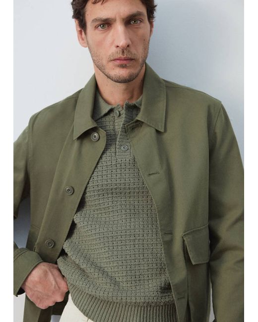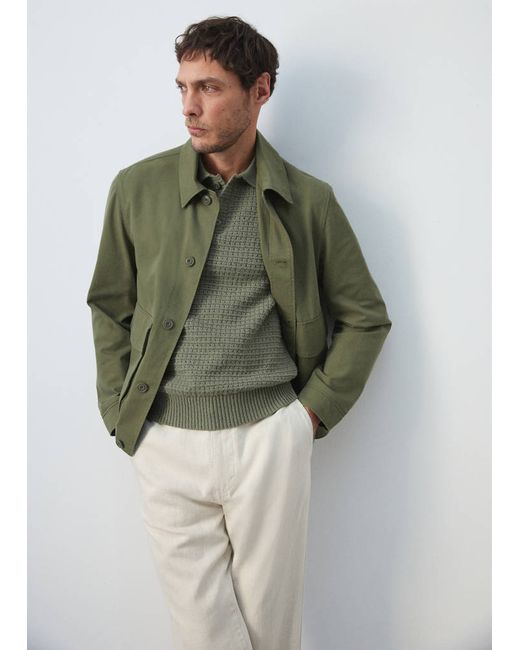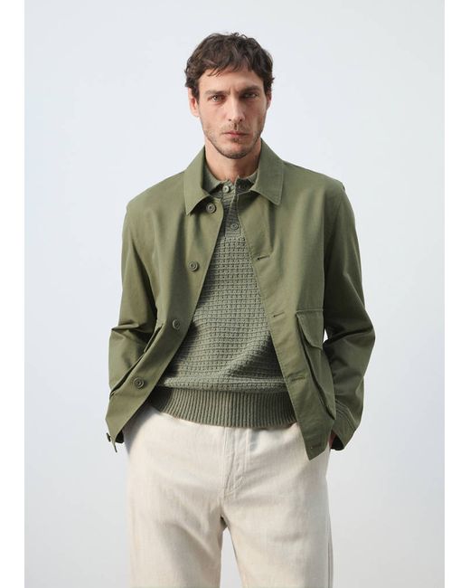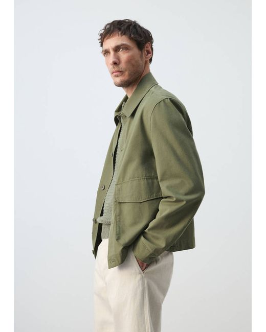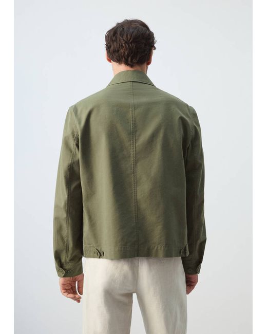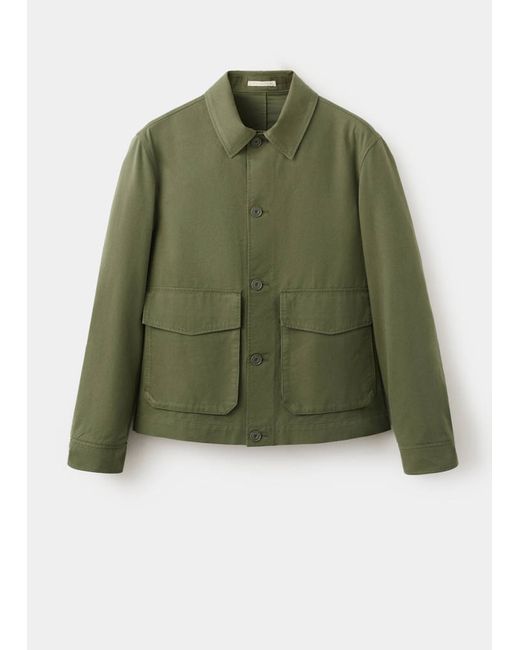 The beige colour is an online exclusive, Cotton and lyocell-blend fabric, Shirt collar, Front closure with buttons, Two patch pockets and front flap pockets, Buttoned cuffs, Straight hem, Without inner lining