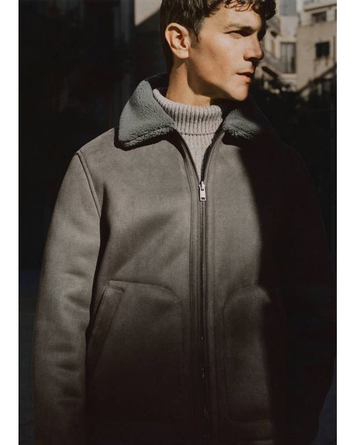 Regular fit, Shearling-lined design, Faux suede, Faux shearling interior, Two side pockets, Faux shearling collar, Long sleeves, Front zip closure