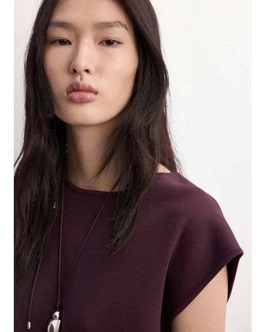 Fine knit fabric, Straight design, Round neck, Short sleeves, Front closure with three buttons