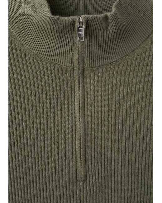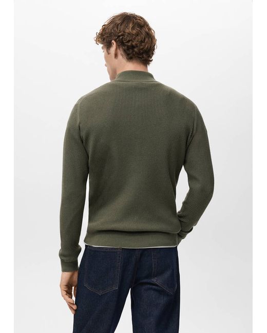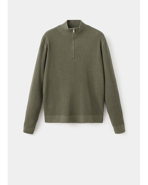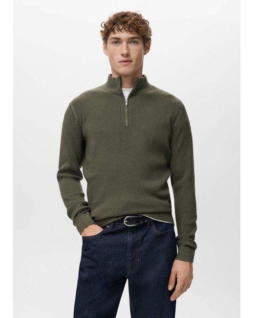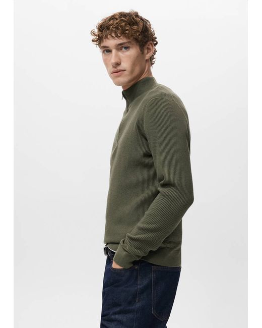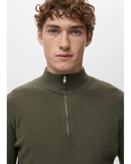 Green Ribbed sweater with zip neck Man
