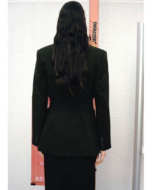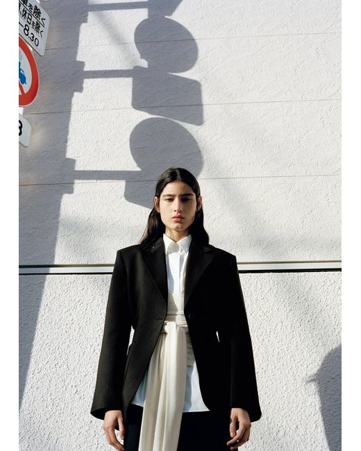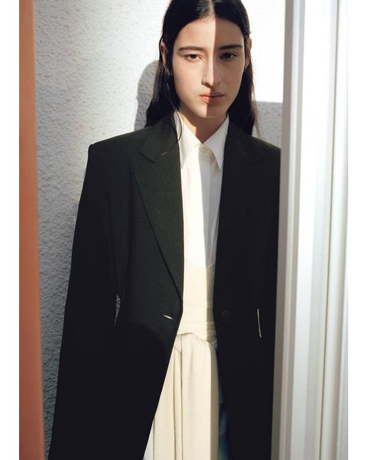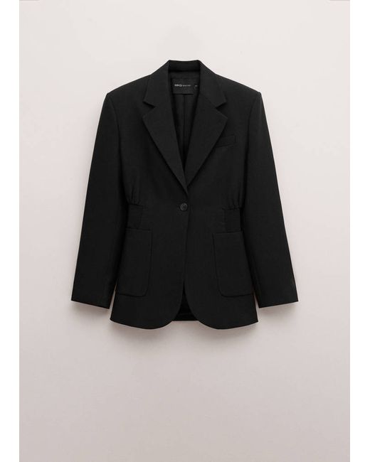 Lyocell-blend fabric, Fitted design, Long sleeves, Lapel-collar V-neck collar, Lapel with notch, Long sleeves with buttoned cuffs, Gathered Waist, Two side patch pockets, No Fastening, Inner lining, Selection collection, A selection of refined garments, made with quality materials to create a feminine and contemporary wardrobe