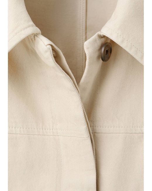 Denim-style cotton fabric, Shirt collar, Long sleeves, Two patch pockets at the front, Concealed front button fastening