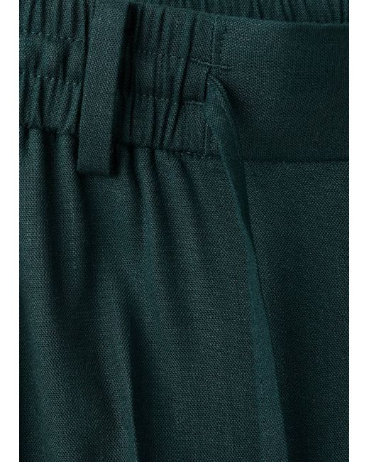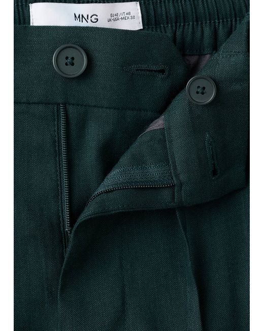 Slim fit, Crop Length, Linen mix, Elastic waist with adjustable drawstring, Lanyard with option of visible or hidden knot on the inside, Belt loops, Two side pockets, Front zipper and button closure