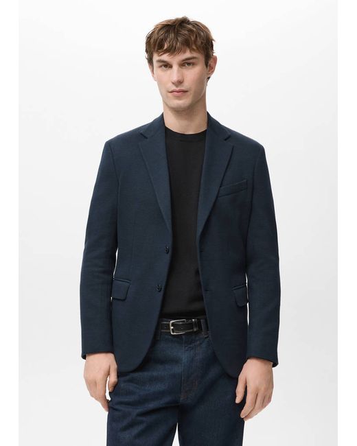 Slim fit, Cotton blend fabric, Notch lapels and buttonhole, Chest welt pocket, Two pockets with flaps on the front, Interior pocket, Front closure with buttons