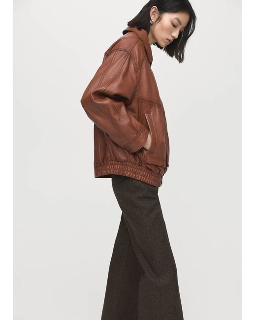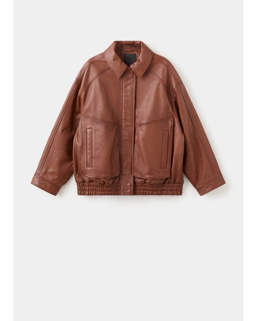 100% sheepskin, Oversized design, Shirt collar, Long sleeves with buttoned cuffs, Two side welt pockets, Elastic gathered hem, Concealed front zip and press-stud fastening with placket, Inner lining