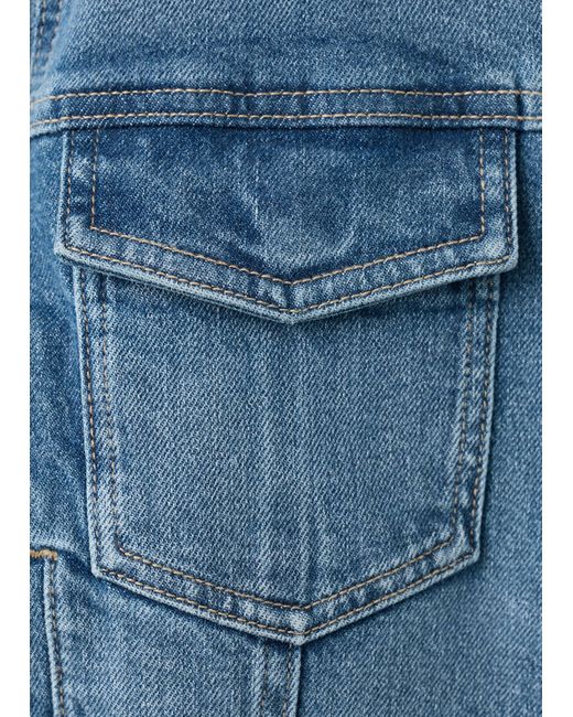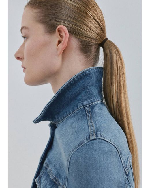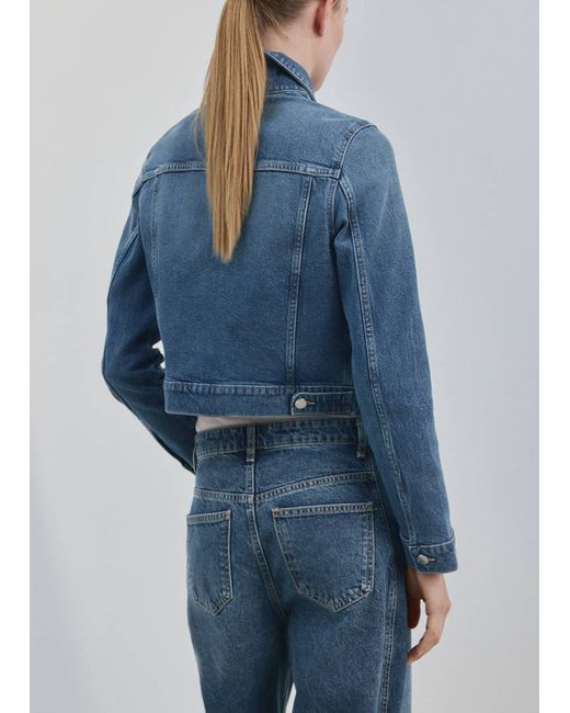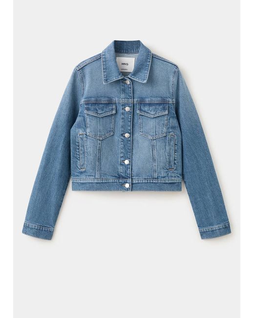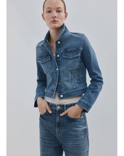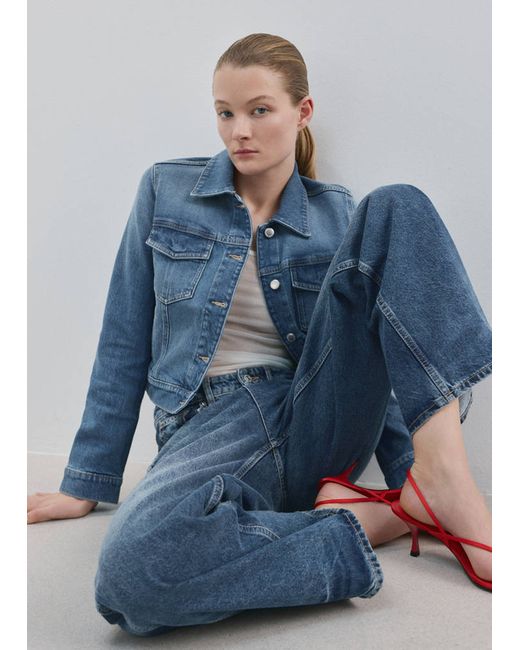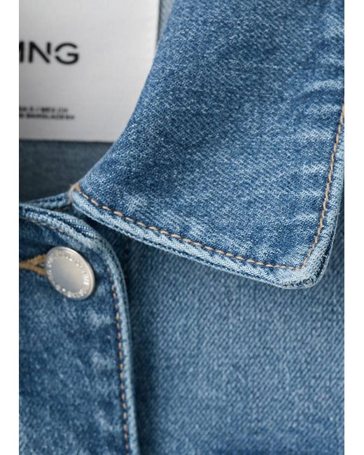 Denim-style cotton fabric, Straight design, Crop design, Shirt collar, Long sleeves with buttoned cuffs, Two patch and flap pockets on the chest, Front closure with buttons, Online Exclusive