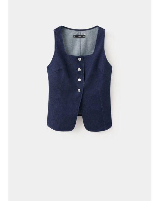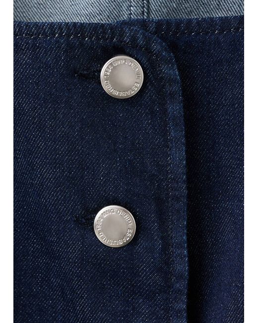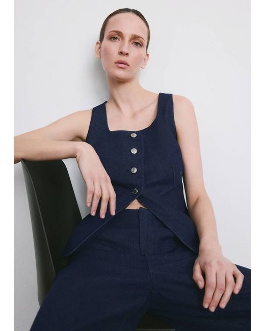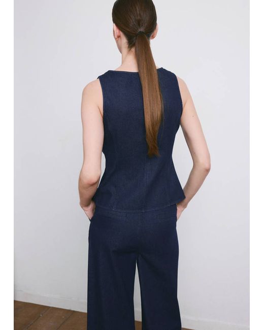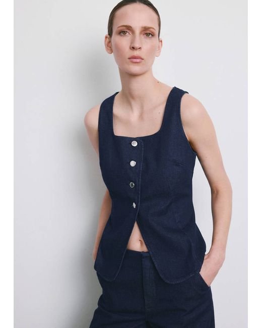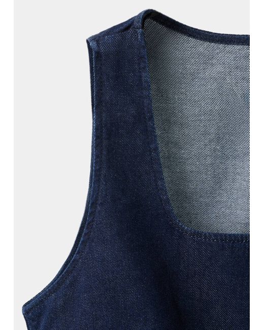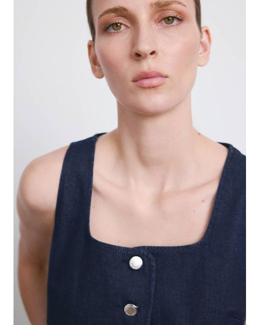 Denim-style cotton fabric, Rinse wash, Fitted Design, Low neckline, Sleeveless, Wide straps, Button fastening at the front, Total look