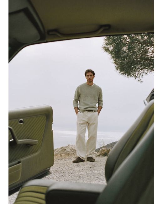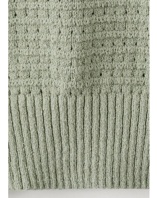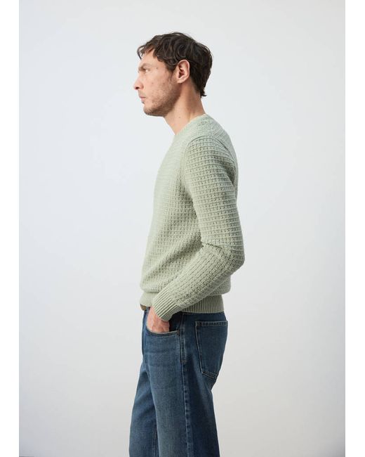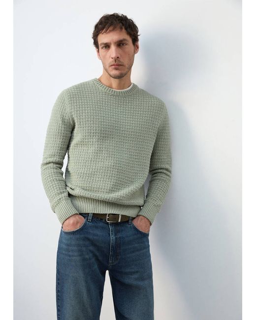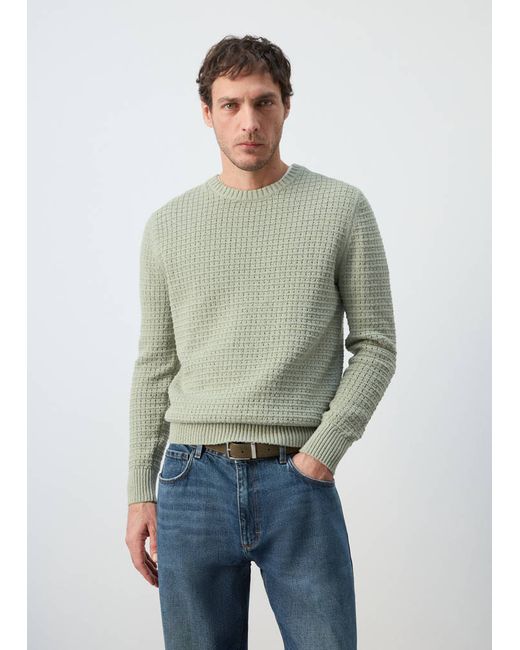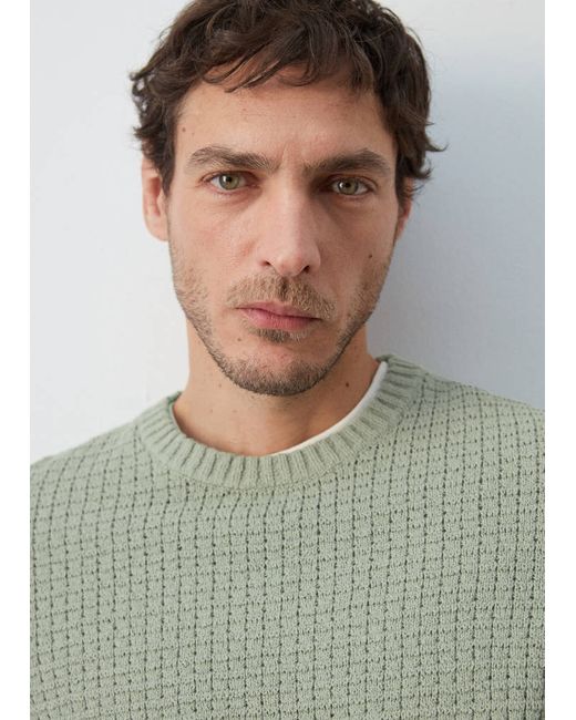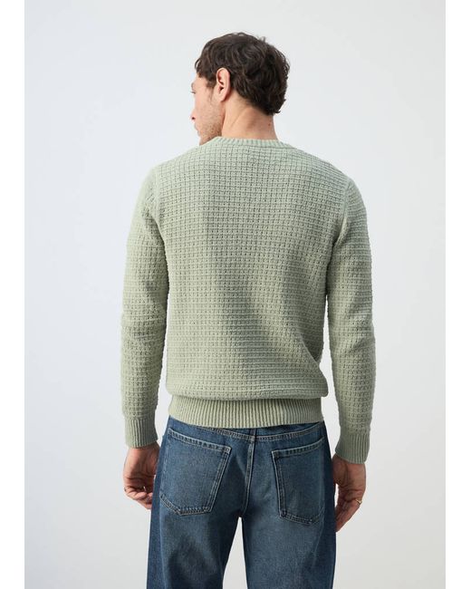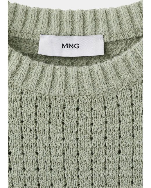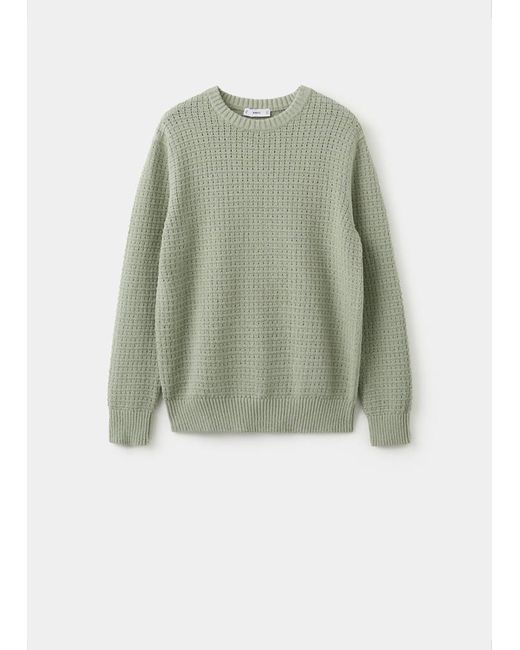 Cotton blend fabric, Chunky openwork knit fabric, Round neck, Long sleeves, Ribbed neck, cuffs and hem