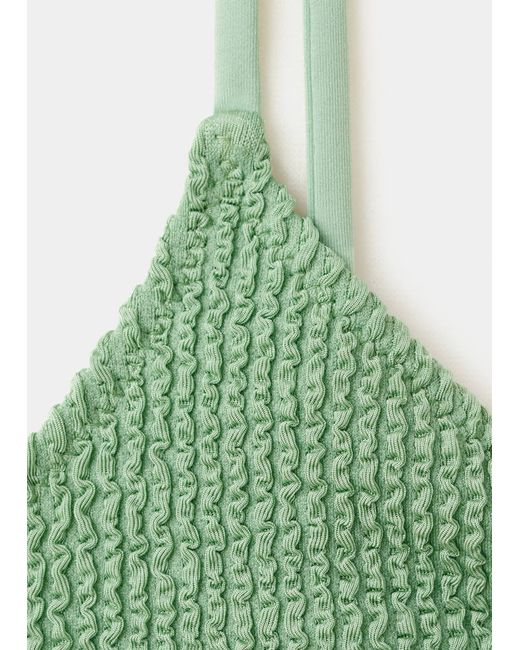Textured fabric, Triangular design, V-neck, Elastic straps, Hook fastening, Inner lining, No Filling, Set Available, Online Exclusive