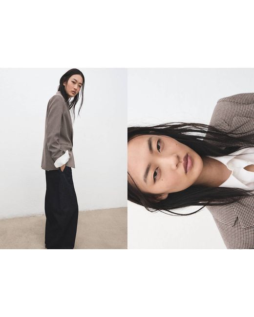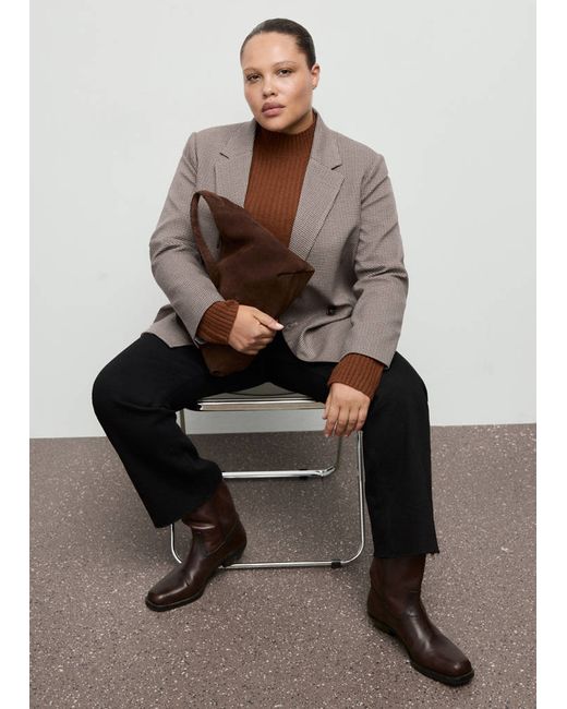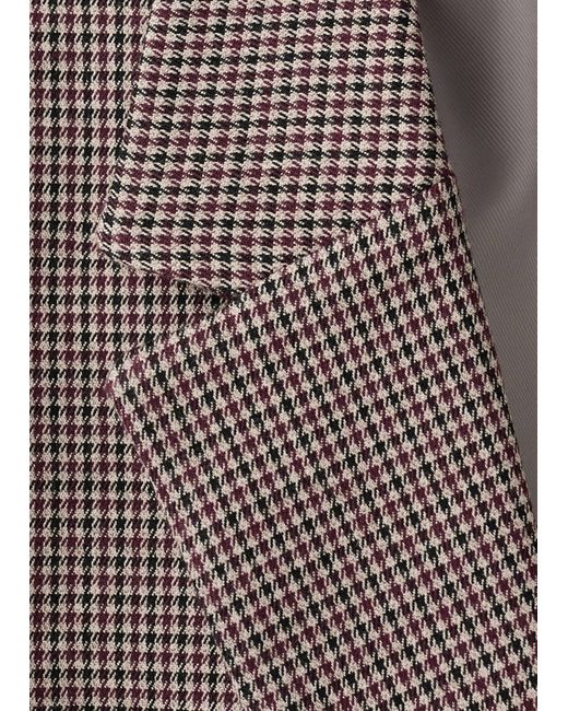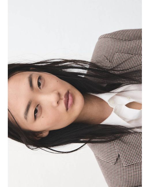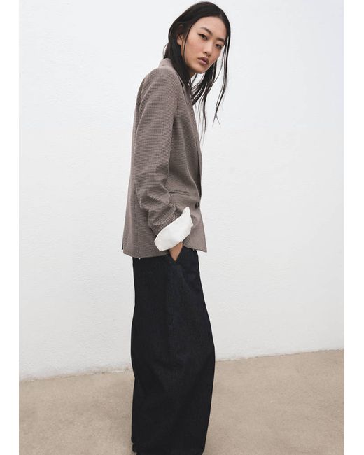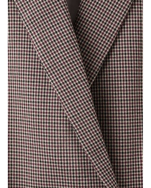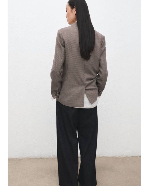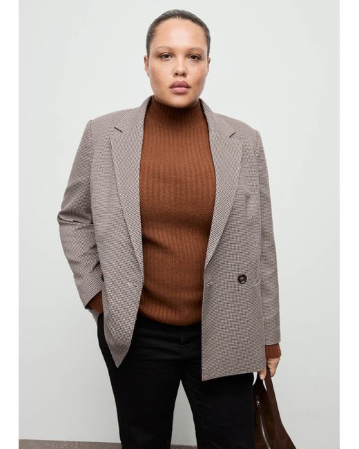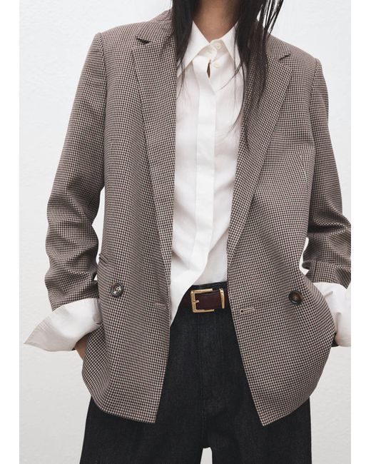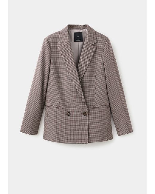 Straight design, Micro houndstooth print, Lapel-collar V-neck collar, Lapel with notch, Long sleeves with buttoned cuffs, Two front welt pockets, Front closure with crossed buttons, Inner lining, Available Plus