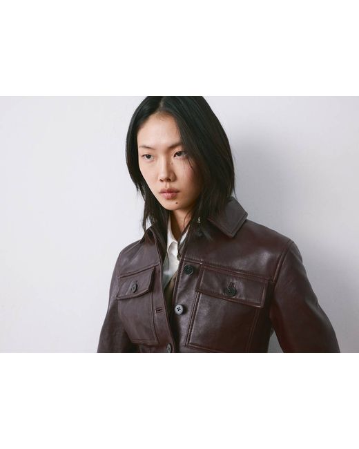 100% sheepskin, Fitted design, Shirt collar, Long sleeves, Two patch and flap pockets on the chest, Front closure with buttons