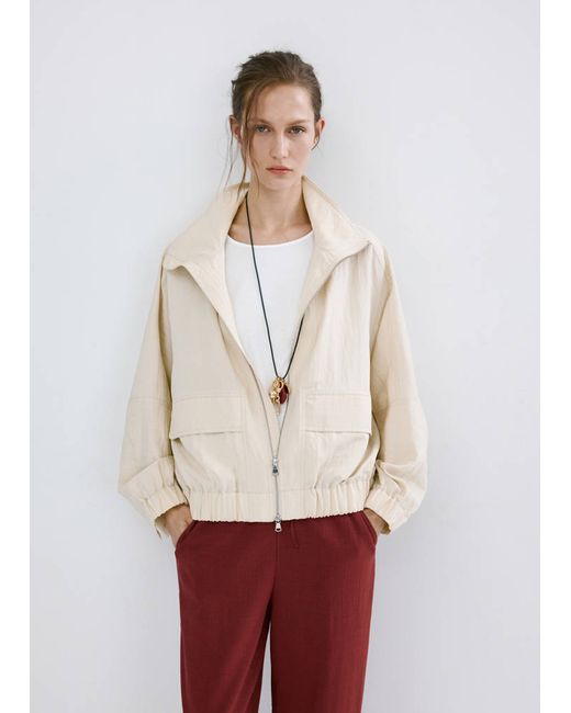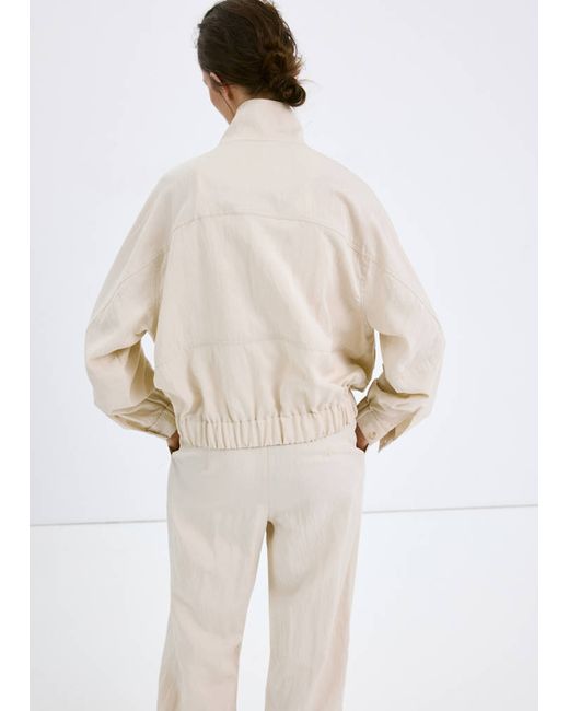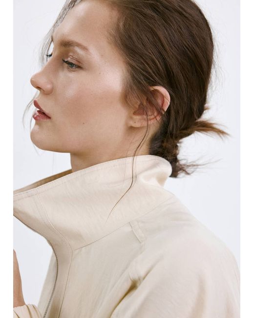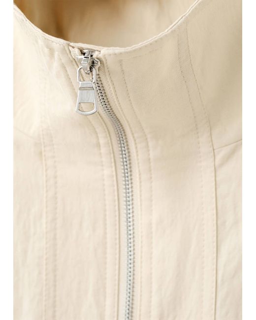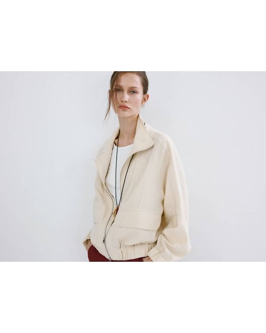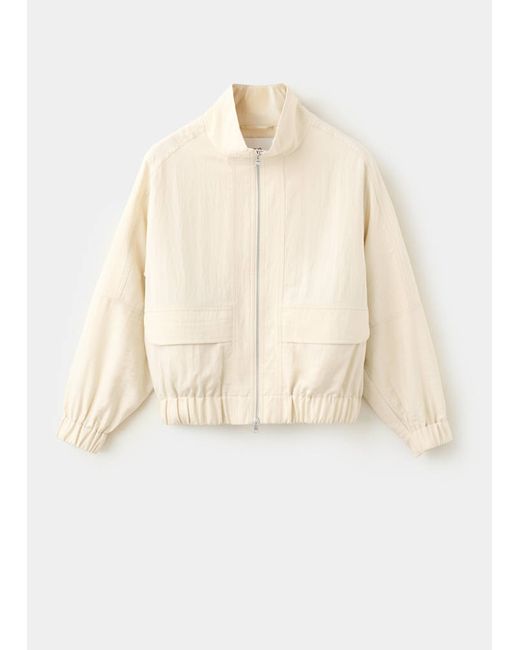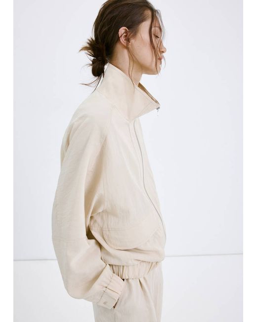 Lyocell fabric, Bomber design, Plain design, Long sleeves, Funnel neck, Two front pockets, Zip closure, 100% cotton lining, Total look