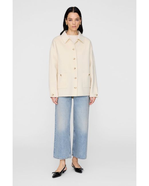 The Luca Jacket is a modern utility-inspired style made from our signature double-faced wool-cashmere fabrication in ivory. - Wool-cashmere blend - Unlined - Oversized Fit - Dropped armholes - Side slits - Two patch pockets at the hips - Gold monogram buttons - Single button cuffs ANINE BING Luca Jacket in Ivory Cashmere Blend