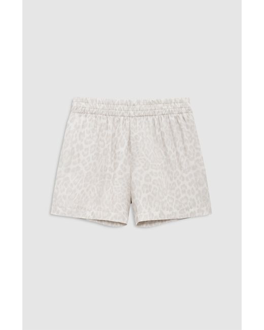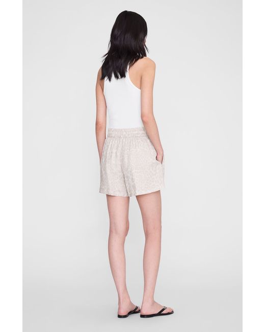 The Kam Short is an elevated casual made from a lightweight fabric in a washed white leopard. - Fully lined - Relaxed fit - High rise - Concealed drawstring waistband - Front slanted pockets - Two back welt pockets ANINE BING Kam Shorts in Washed White Leopard