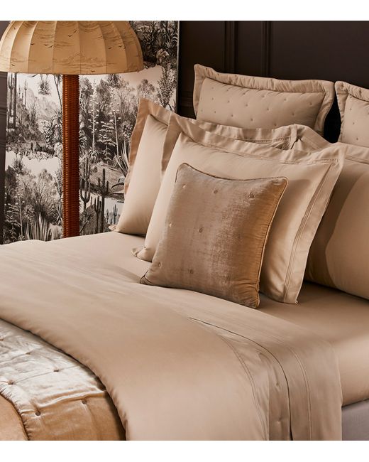Crafted from pure organic cotton, Yves Delorme's Triomphe bedlinen collection creates a calm, contemporary atmosphere. Each piece has been woven with a silky sateen finish and trimmed with piping for a subtle point of interest, ready to be layered with piles of knitted blankets and plush cushions for a relaxing result.