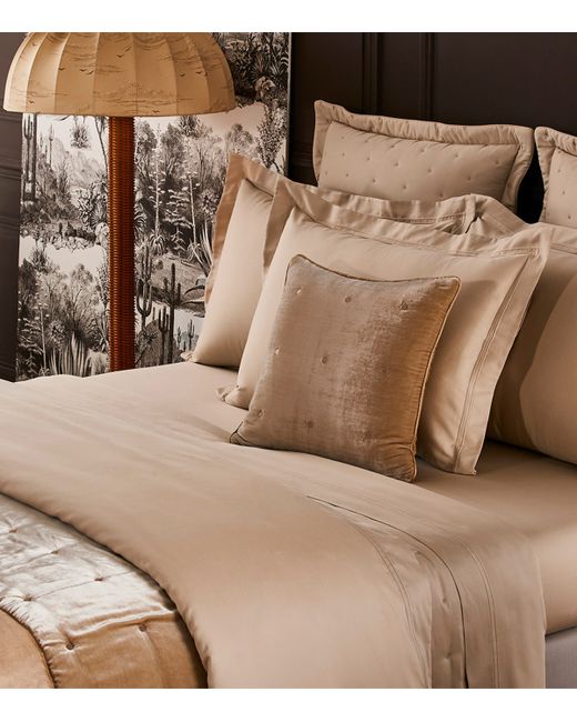 Crafted from pure organic cotton, Yves Delorme's Triomphe bedlinen collection creates a calm, contemporary atmosphere. Each piece has been woven with a silky sateen finish and trimmed with piping for a subtle point of interest, ready to be layered with piles of knitted blankets and plush cushions for a relaxing result.