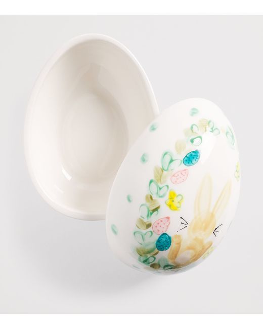 Capture the magic of Easter time with Jayne Redmond’s hand-painted ceramics. This egg-shaped trinket box is decorated with a floral wreath and bunny rabbit, opening to reveal a generous bowl for all manner of Easter treats – chocolate or not.