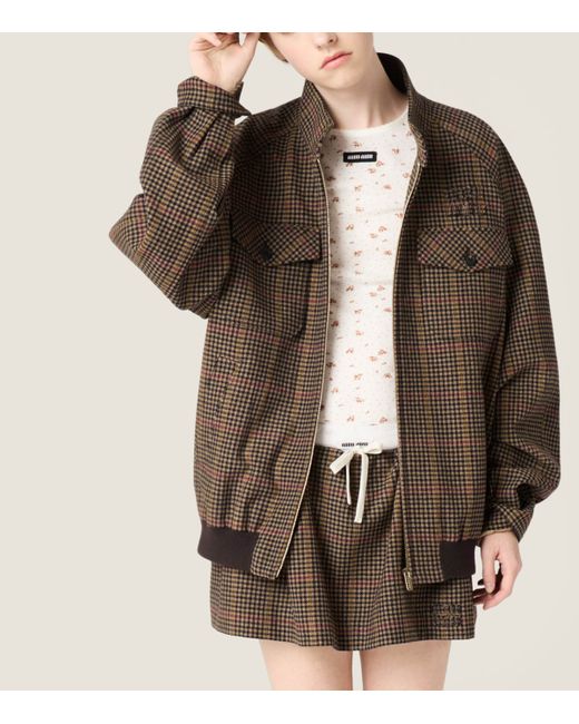 Just four years into its existence, Miu Miu sent Chloë Sevigny down its Spring/Summer 1996 runway wearing knickers, and with their recent resurgence, the House continues its knack for short hemlines. Extending it to the skirt department, this mini houndstooth iteration will be a supreme pairing for the label’s flats or heels.