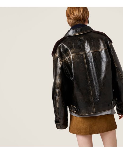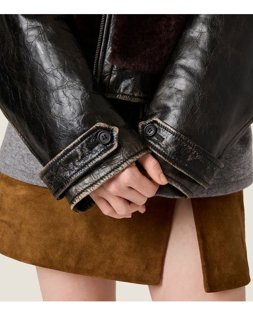 This Miu Miu jacket is crafted from leather that’s deliberately worn to demonstrate the exceptional quality of the fibre. The label’s mastery over material is plain to see in the subtle fading and creasing along the exterior, embodying the sentiment that some things only get better with age.