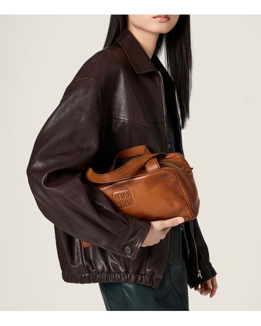 Leather is a truly exceptional material – rarely needing embellishment or heavy detailing to show off its beauty. Miu Miu makes it the focal point of this blouson-style jacket, with the lack of decoration – except for the subtle, tonal logo – showing off the tactility of the fibre.