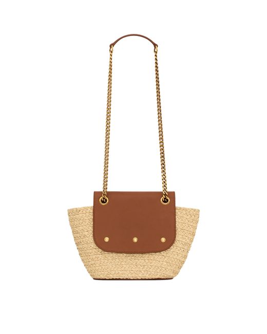 The Art Deco-inspired plaque that takes centre stage on Saint Laurent's Panier bag was designed by Adolphe Mouron Cassandre in 1961. This piece is woven from raffia and features a smooth leather flap and gold-tone chain to ensure the brand's markers of opulence are still on show.