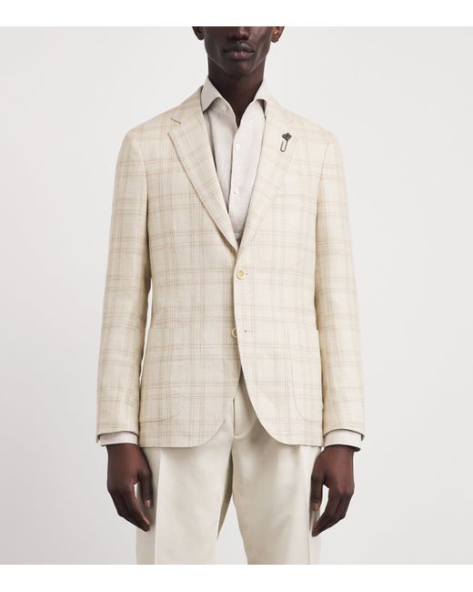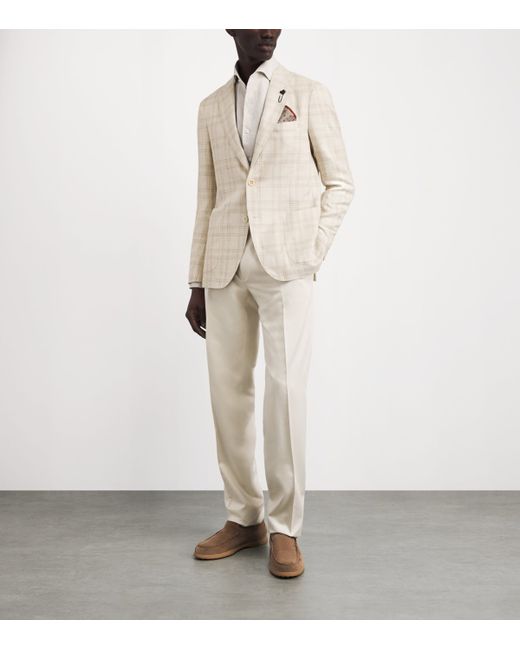 Defined by its penchant for intricacies, Lardini is a brand synonymous with meticulous tailoring, as this blazer so deftly illustrates. An unlined construction means it falls clean and light, while refined, sharp lines bring a structured silhouette into focus. As expected from the Italian House, every sartorial hallmark is thoughtfully considered, from the timeless Prince of Wales check to the brand’s signature floral emblem neatly pinned at the lapel.