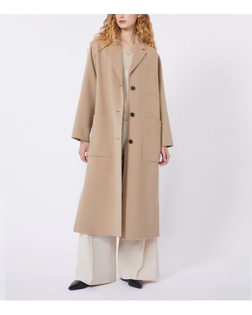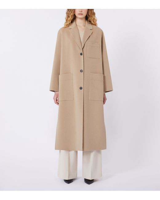 Weekend Max Mara’s timeless aesthetic is achieved through the effortless cuts of its pieces and subtle nods to traditional silhouettes. This long coat, for example, is designed with a classic notched lapel collar, while a loose fit that flares slightly at the hem lends it a contemporary shape.