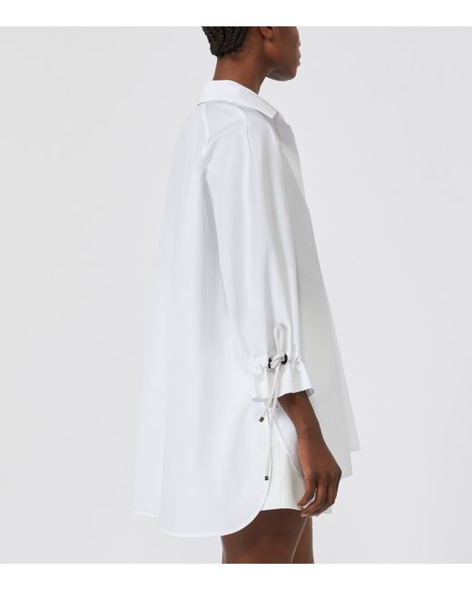 White Cotton Poplin Drawstring Blouse