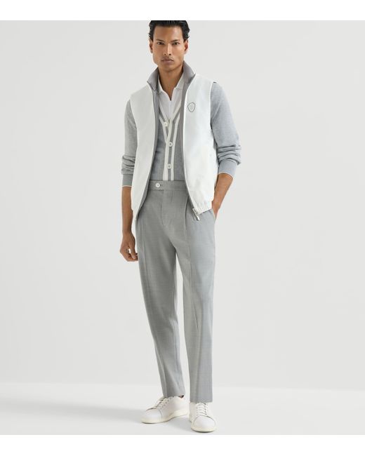Brunello Cucinelli’s refined aesthetic extends to every piece – even the most technical. This gilet offers stylistic versatility thanks to its reversible design, but the same sleek look applies to both sides, with embroidered crests ensuring the Italian House – and its artisanal craft – is immediately distinguishable at a glance.