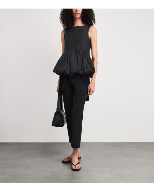 Much like the boat neckline, peplum hems are swiftly carving out their place in the timeless fashion hall of fame. Róhe presents its own elegant take on both details with this blouse, capturing the spotlight through a low back, bubble-like volume and a luxurious composition of virgin wool and silk.