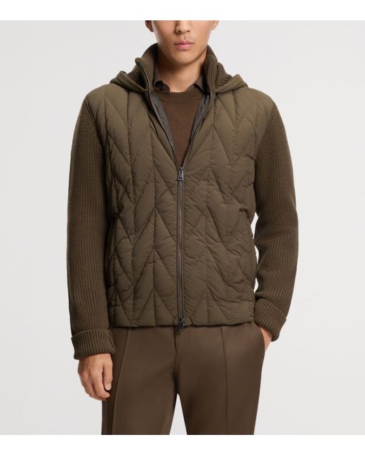 boss blends tradition and technical innovation in this hooded hybrid jacket, pairing soft wool-knit panels with cosy down quilting for warmth and movement. The combination of materials gives the silhouette a tactile, layered effect while keeping it lightweight and easy to wear, making it a practical yet refined choice for daily rotation.