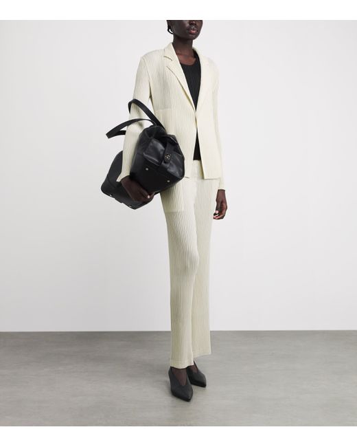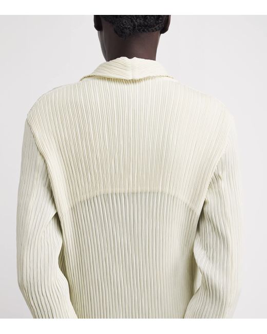 Driven by fabric innovation, Issey Miyake continues to improve upon its iconic pleats through new techniques, as showcased by this blazer. Reimagined through textured pleats, the folds of this formalwear classic features a “hatched” surface, offering a novel interpretation on traditional suiting.