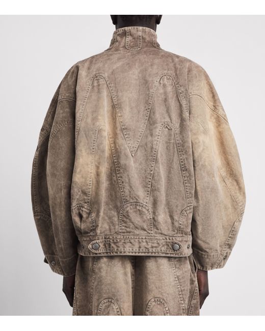 Part of im Men’s Elements series, inspired by ceramic artist Shoji Kamoda, this oversized jacket translates the expressive qualities of pottery into textile form. The fabric reflects the rough textures, rustic colours and striking linear patterns seen in Kamoda’s highly detailed ceramics. Crafted from thick cotton and finished with a chemical wash, it develops a softly faded surface and tactile depth, designed to gain an even richer patina the more it is worn.