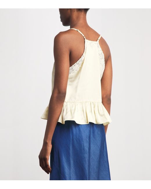 Taking inspiration from the streets of its Parisian home, Sandro infuses a sense of sunny feminine charm into this top. The satin-effect fabric is perfectly complemented by a delicate floral lace trim and ruffled hemline, creating a romantic silhouette suited to endless spring/summer ensembles.