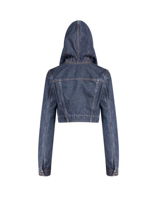 Alaïa takes something as familiar as a denim jacket and shifts the proportions just enough to make it feel new. Cropped at the waist for a sharp, sculpted line, it’s offset by an exaggerated hood that adds drama and architectural volume, reframing casual denim through the House’s lens of form and balance.