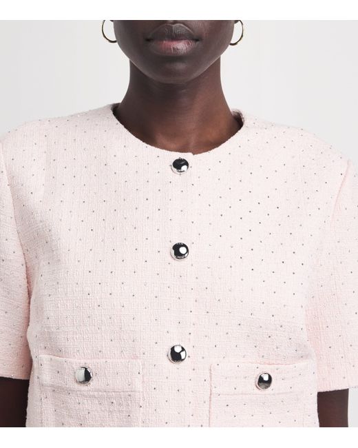 Tweed has long embodied an enduring charm, celebrated both for its inherently French association and its artisanal craftsmanship. Maje captures that spirit in this pastel jacket, where the timeless texture is reimagined with sparkling embellishments and practical patch pockets.