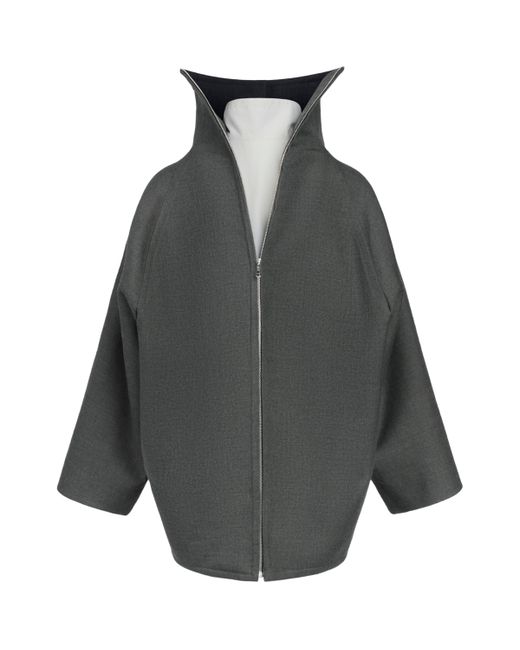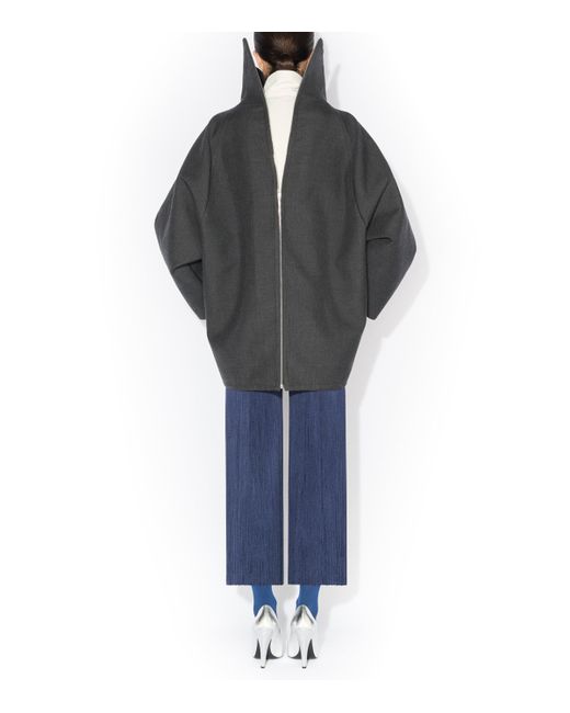 Alaïa is an expert of sartorial mirages, and for this double-faced wool coat, the Maison created not one, but two fastening systems. The modern piece featured a traditional button enclosure at the front, but turn your head and see the futuristic back zip – its own version of have your cake and eat it, too.