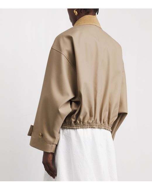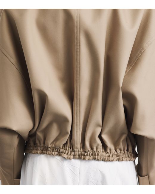 Contemporary, sculptural silhouettes are where Róhe’s forte lies, exploring modern minimalism and tailoring to create wardrobe staples that push the boundaries of fashion. With its cotton construction, this bomber jacket draws inspiration from a classic trench coat, while a suede collar, dropped shoulders and an elasticated cropped hem keep things inherently modern.