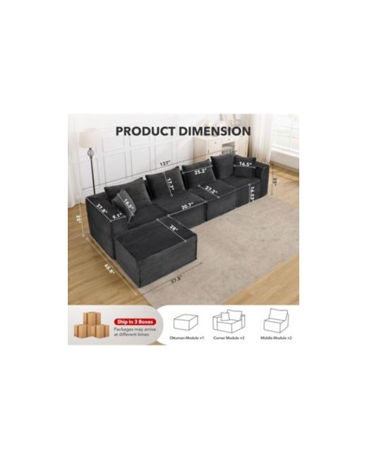 106x22 Modular Sectional Sofa Corduroy Cloud Couch with L-Shaped Chaise No Assembly
