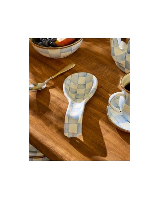 Make cooking a little neater with this MacKenzie-Childs spoon rest designed to support everything from quick meals to slow-simmered dishes. Hand-painted sky blue checks adorn the curved enamel piece, adding character while keeping counters tidy.